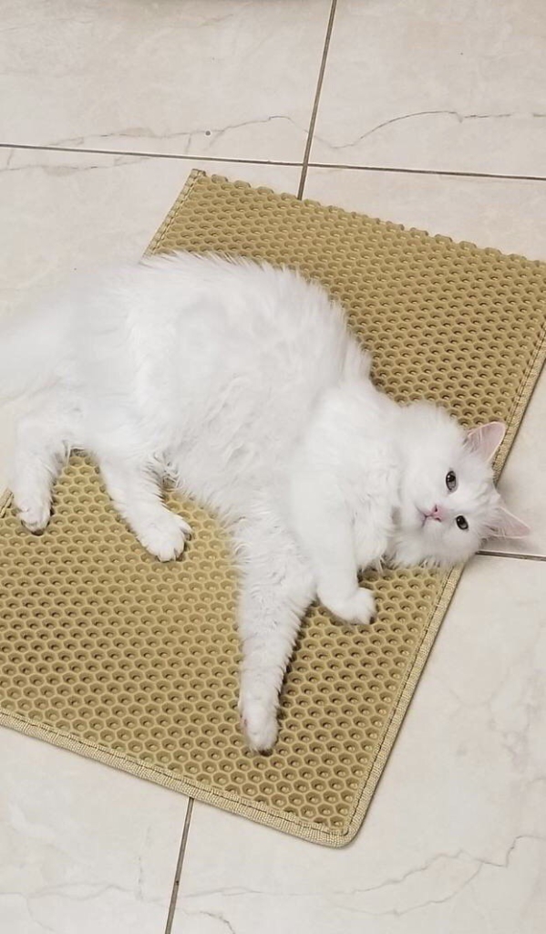Килимок кладеться біля котячого туалету та/або в зоні прийому їжі. Всі частинки туалету або корми прокидаються крізь осередки і залишаються на нижньому шарі килима, а не розносяться на лапах кота по квартирі.