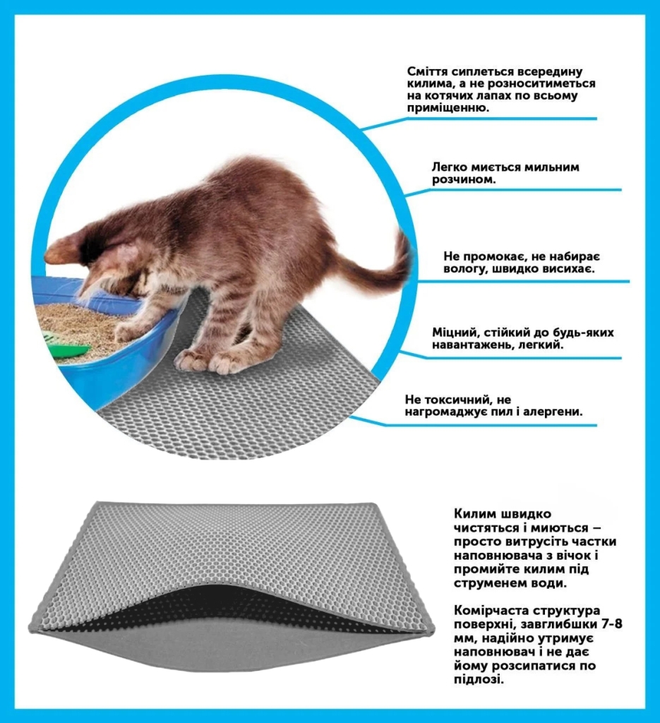 Килимок двошаровий водонепроникний під котячий туалет чи лоток.