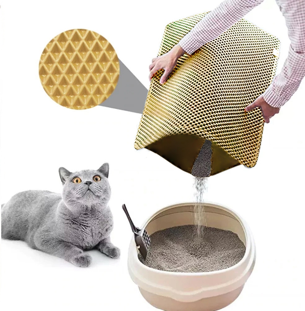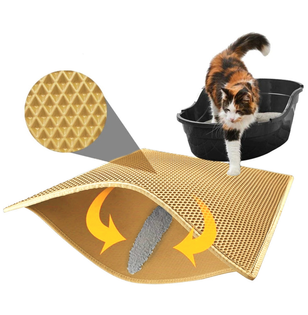 Килимок складається з двох шарів, верхній шар виглядає у вигляді сітки, а нижній шар цільний та водонепронекний. Завдяки чому часточки наповнювачу, бруду або їжі просипаються через верхній шар і залишаються на нижньому.