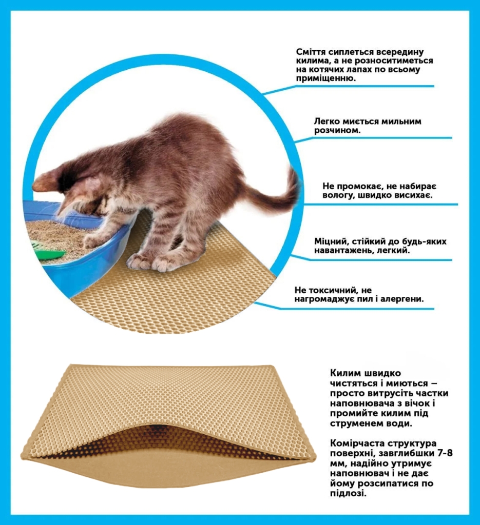 Килимок двошаровий водонепроникний під котячий туалет чи лоток.
