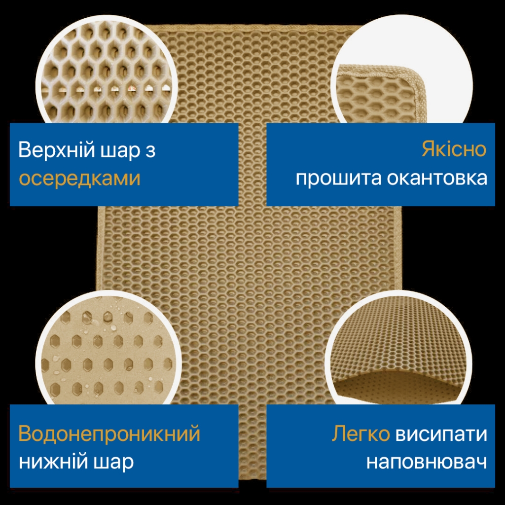 Килимок двошаровий для котячого лотка EvaMat 60х67 см бежевий