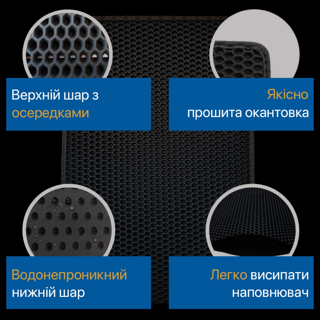 Килимок двошаровий для котячого лотка EvaMat 60х67 см чорний
