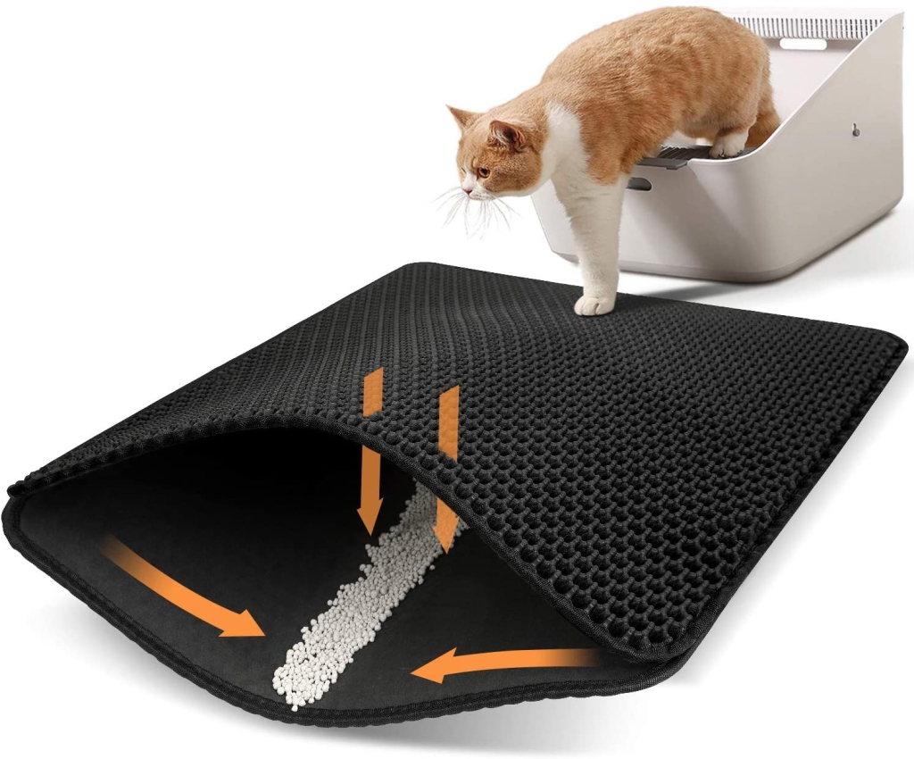Килимок складається з двох шарів, верхній шар виглядає у вигляді сітки, а нижній шар цільний та водонепронекний. Завдяки чому часточки наповнювачу, бруду або їжі просипаються через верхній шар і залишаються на нижньому.