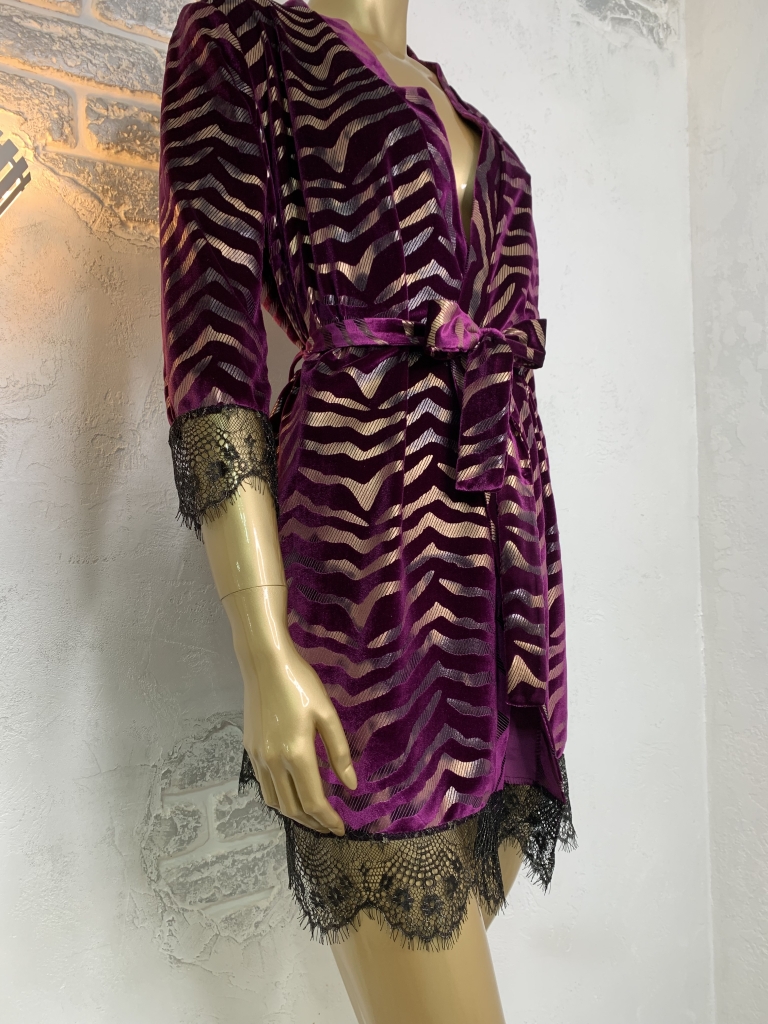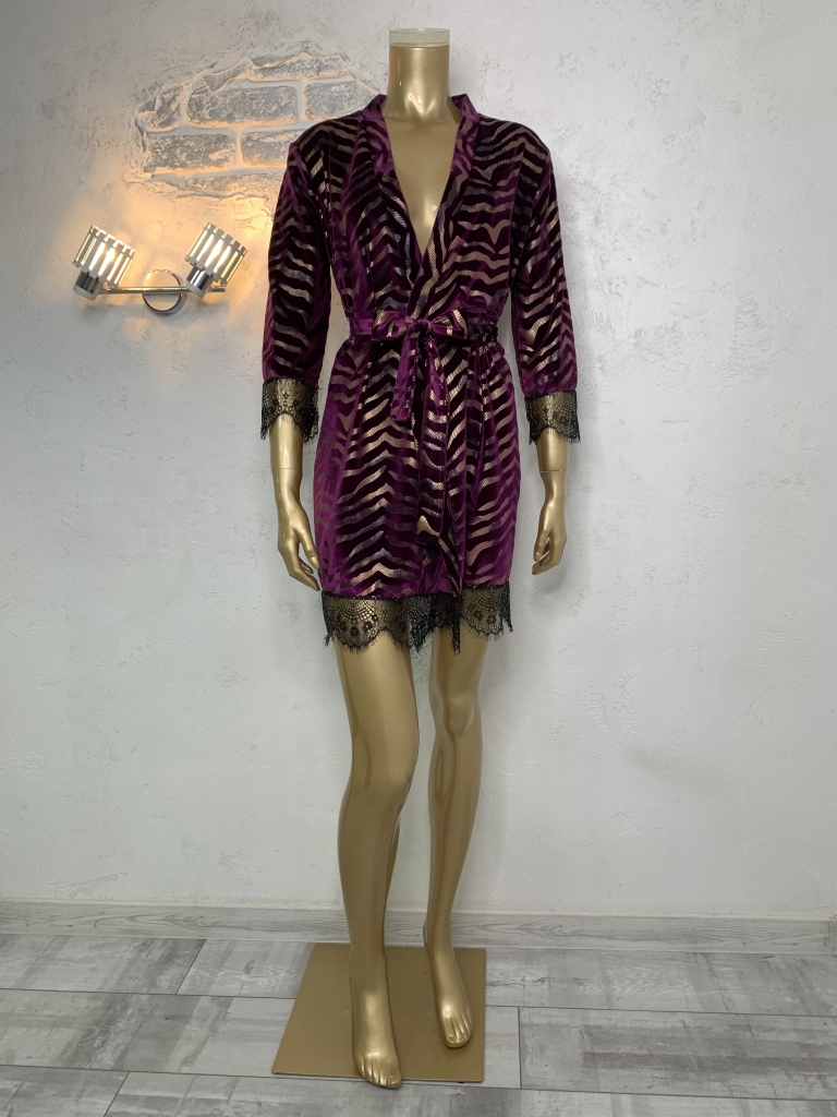 Жіночий велюровий халат. Сливовий колір. Принт Золото.