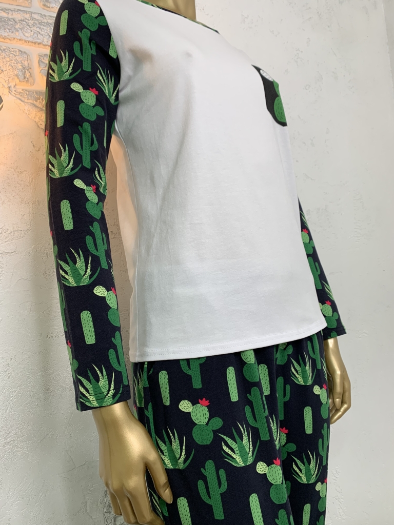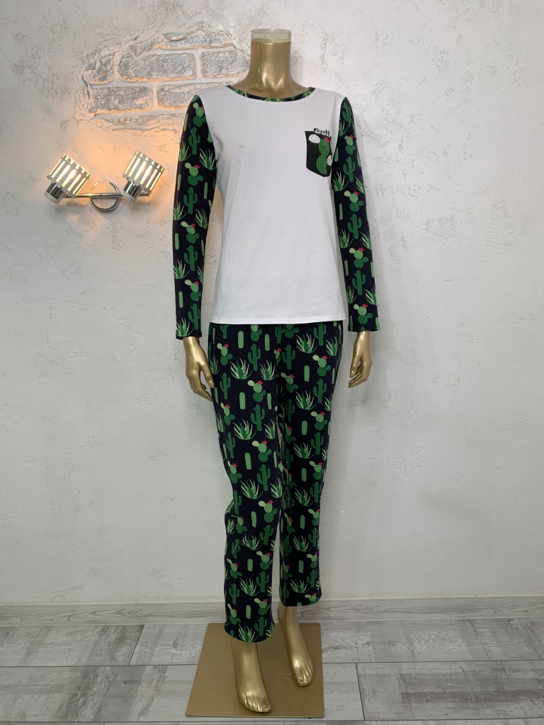 Жіночий набір. Футболка та штани. Біло-зелений. Кактуси