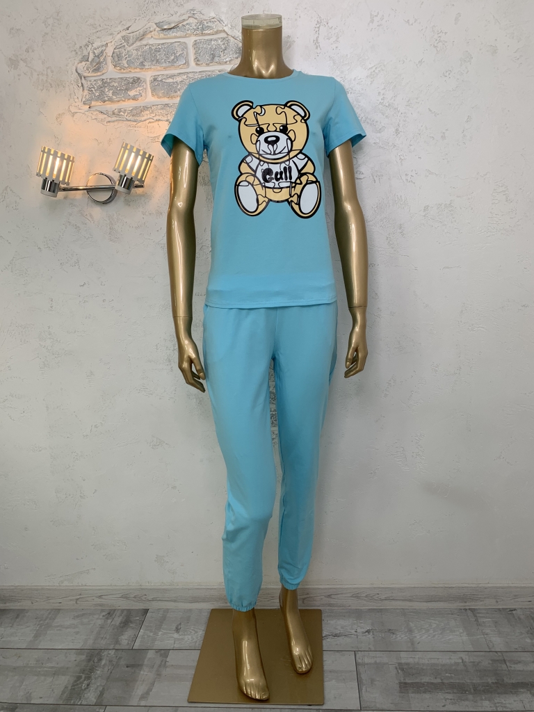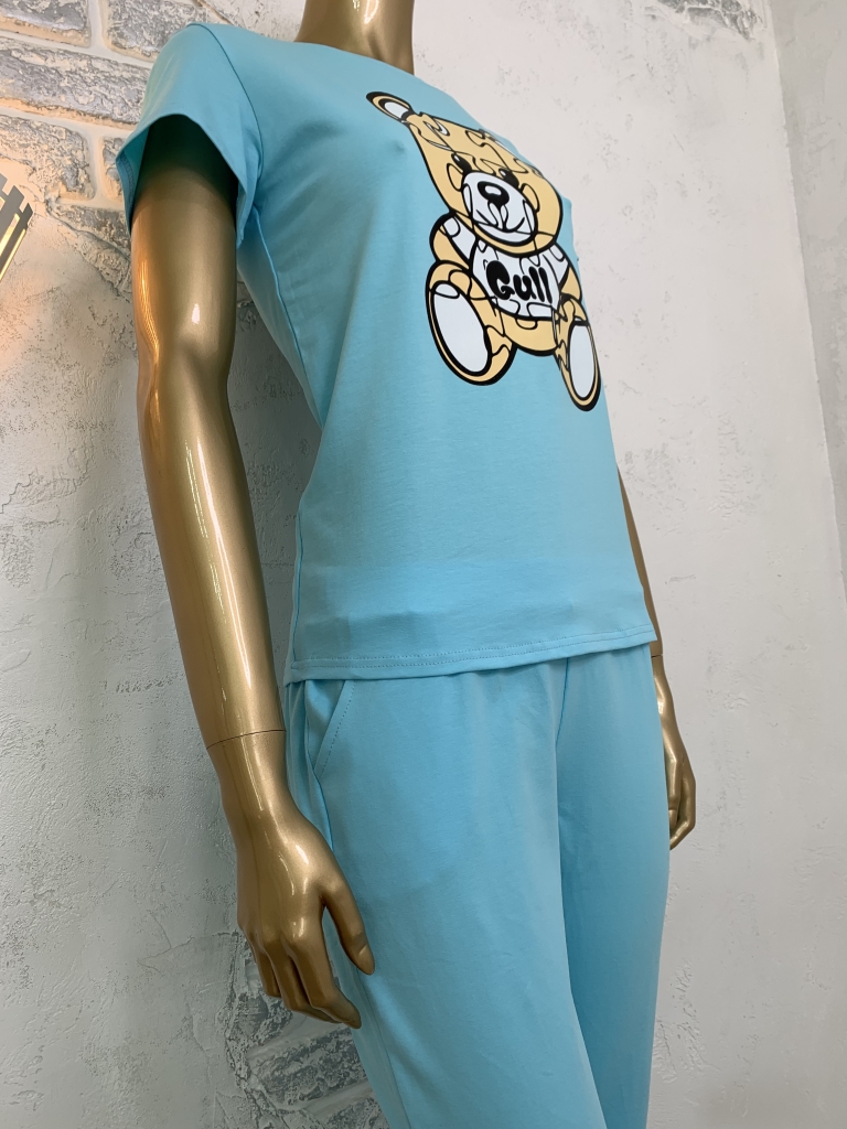 Жіночий набір. Футболка та штани. Синій. Ведмідь