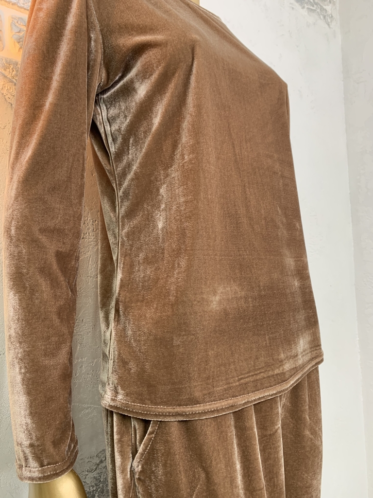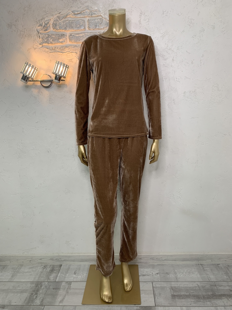 Жіночий велюровий піжамний комплект. Футболка та штани. Капучіно колір.