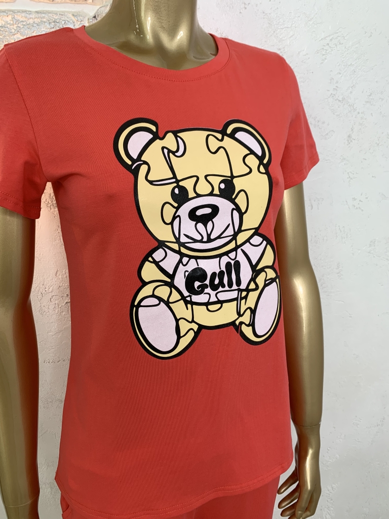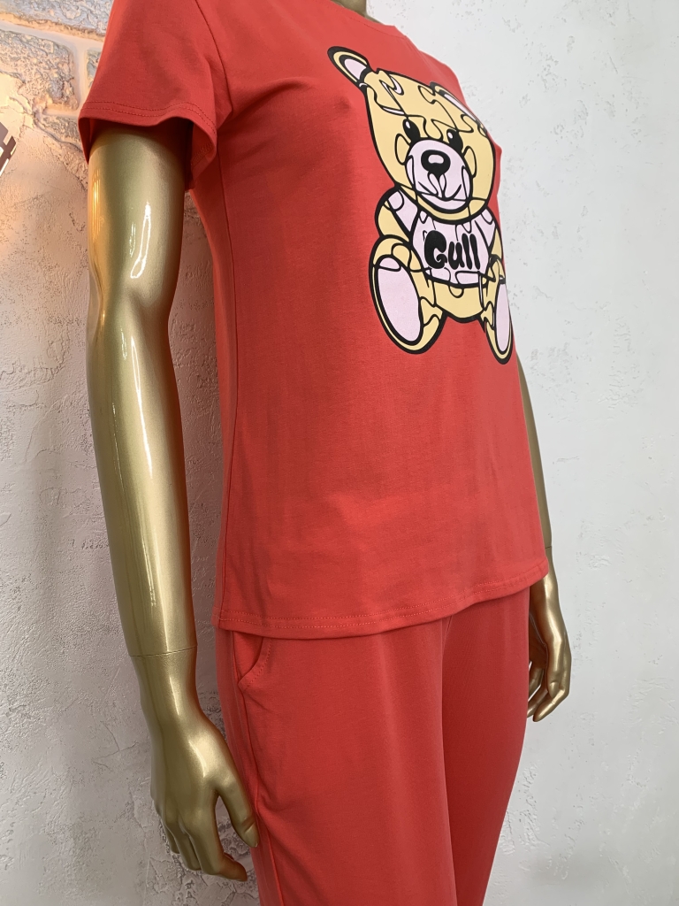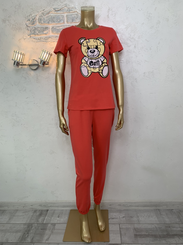 Жіночий набір. Футболка та штани. Кораловий. Ведмідь
