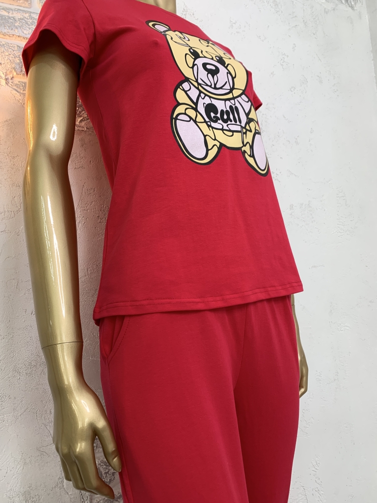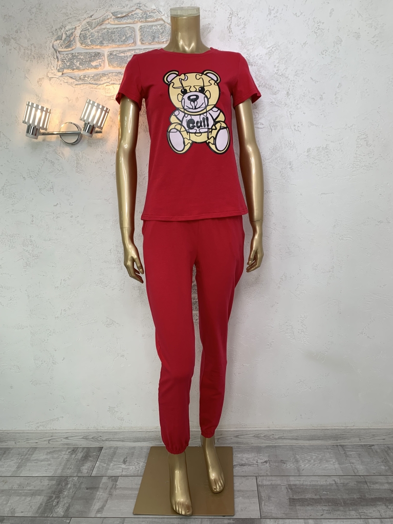 Жіночий набір. Футболка та штани. Малиновий. Ведмідь