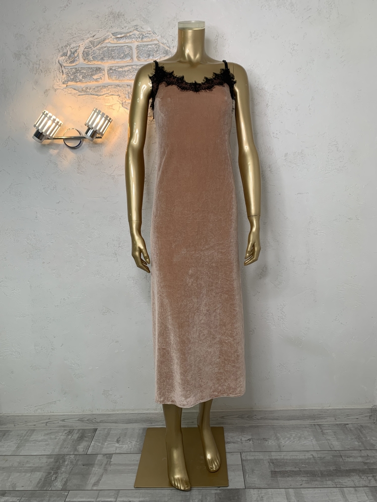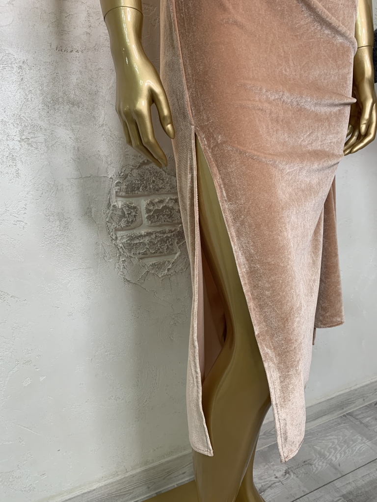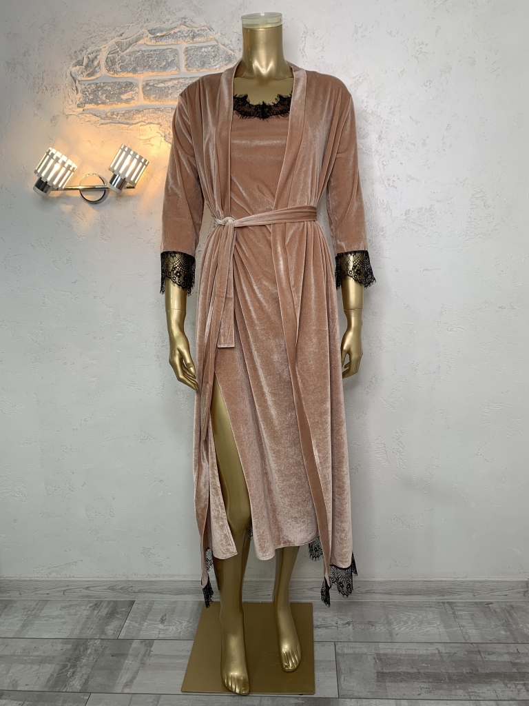 Жіночий велюровий піжамний комплект. Халат та нічна сорочка. Абрикосовий колір.