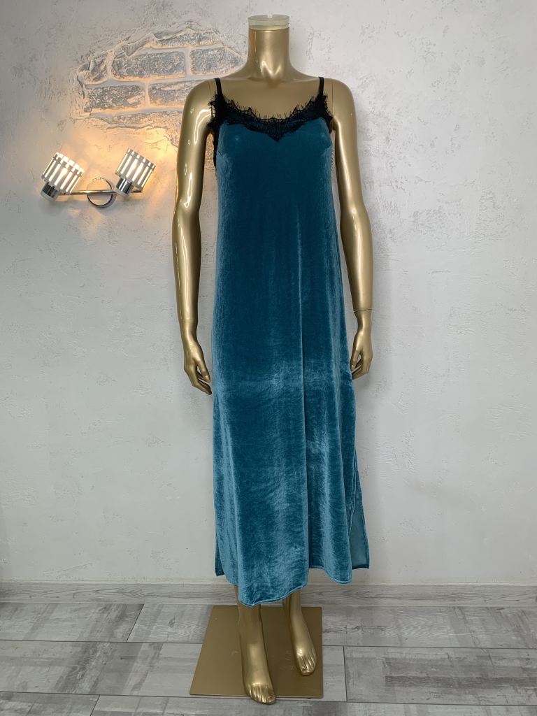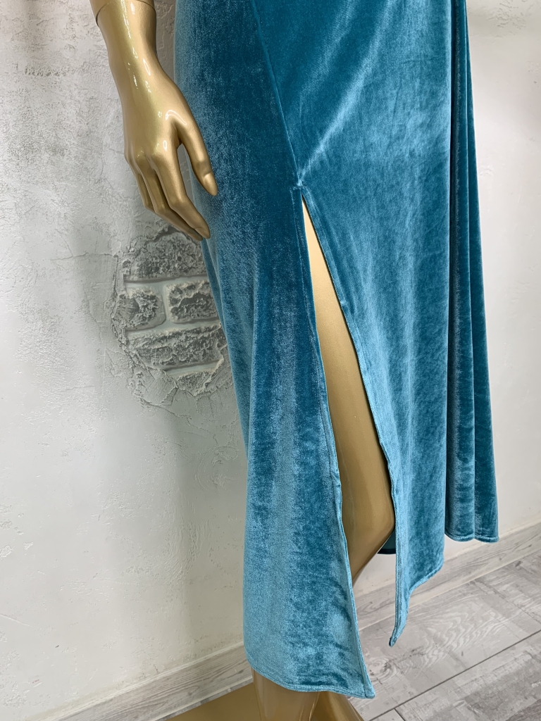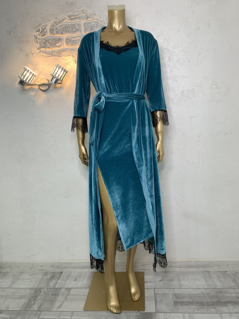 Жіночий велюровий піжамний комплект. Халат та нічна сорочка. Бірюзовий колір.