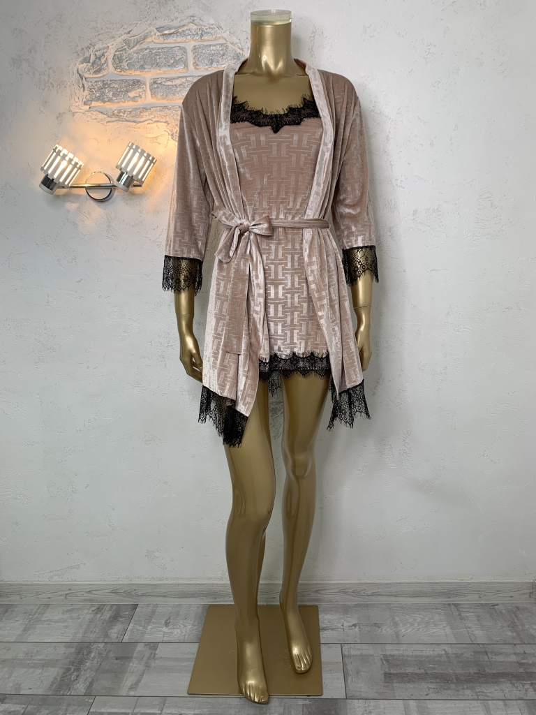Жіночий набір. Халат та нічна сорочка. Пудровий. Фенді