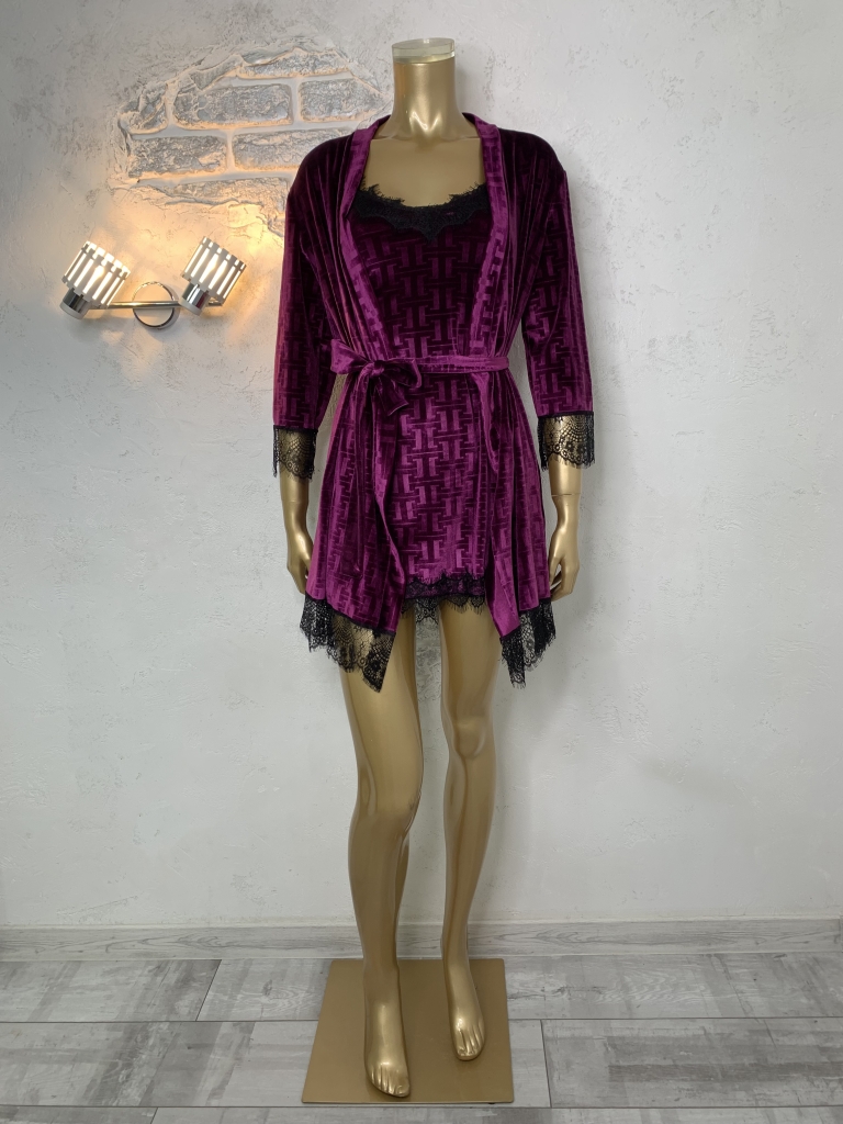 Жіночий набір. Халат та нічна сорочка. Сливовий. Фенді