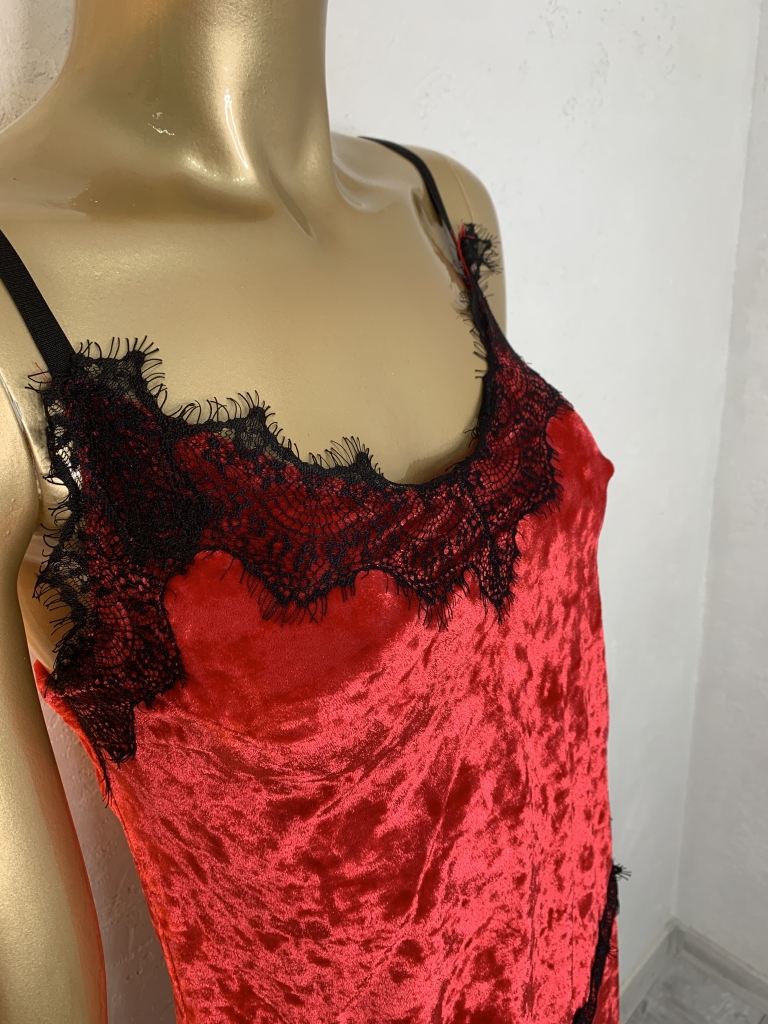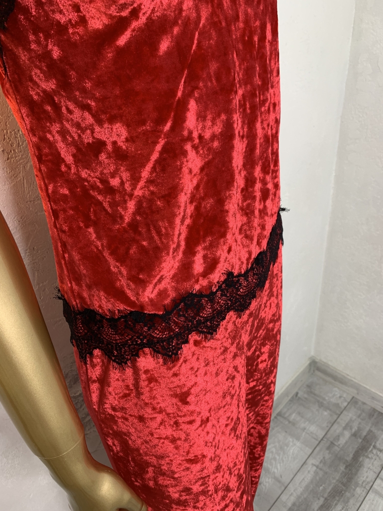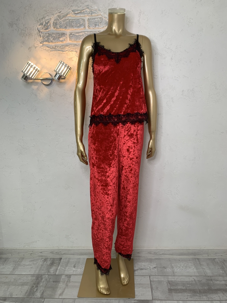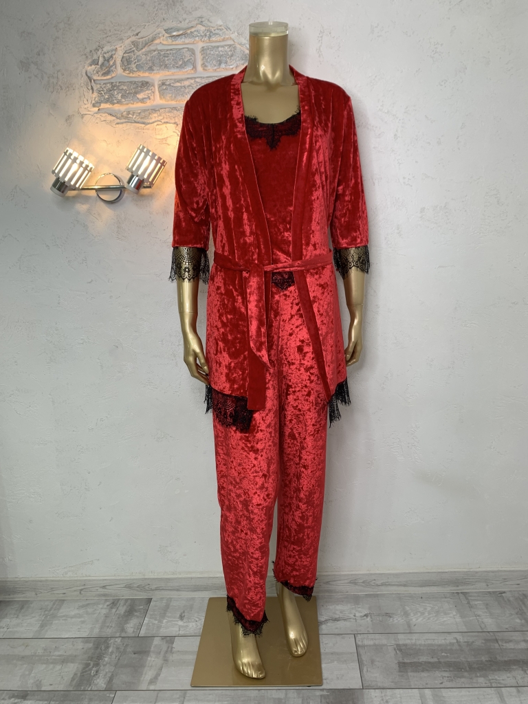 Жіночий велюровий піжамний комплект. Халат, майка та штани. Червоний колір.