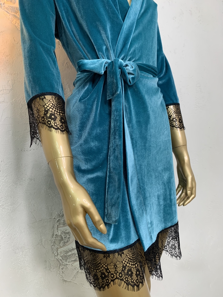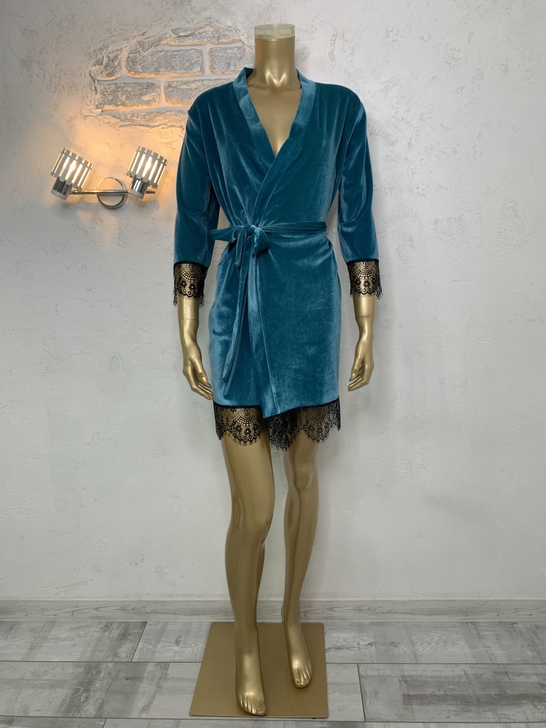 Жіночий велюровий халат. Бірюзовий колір.